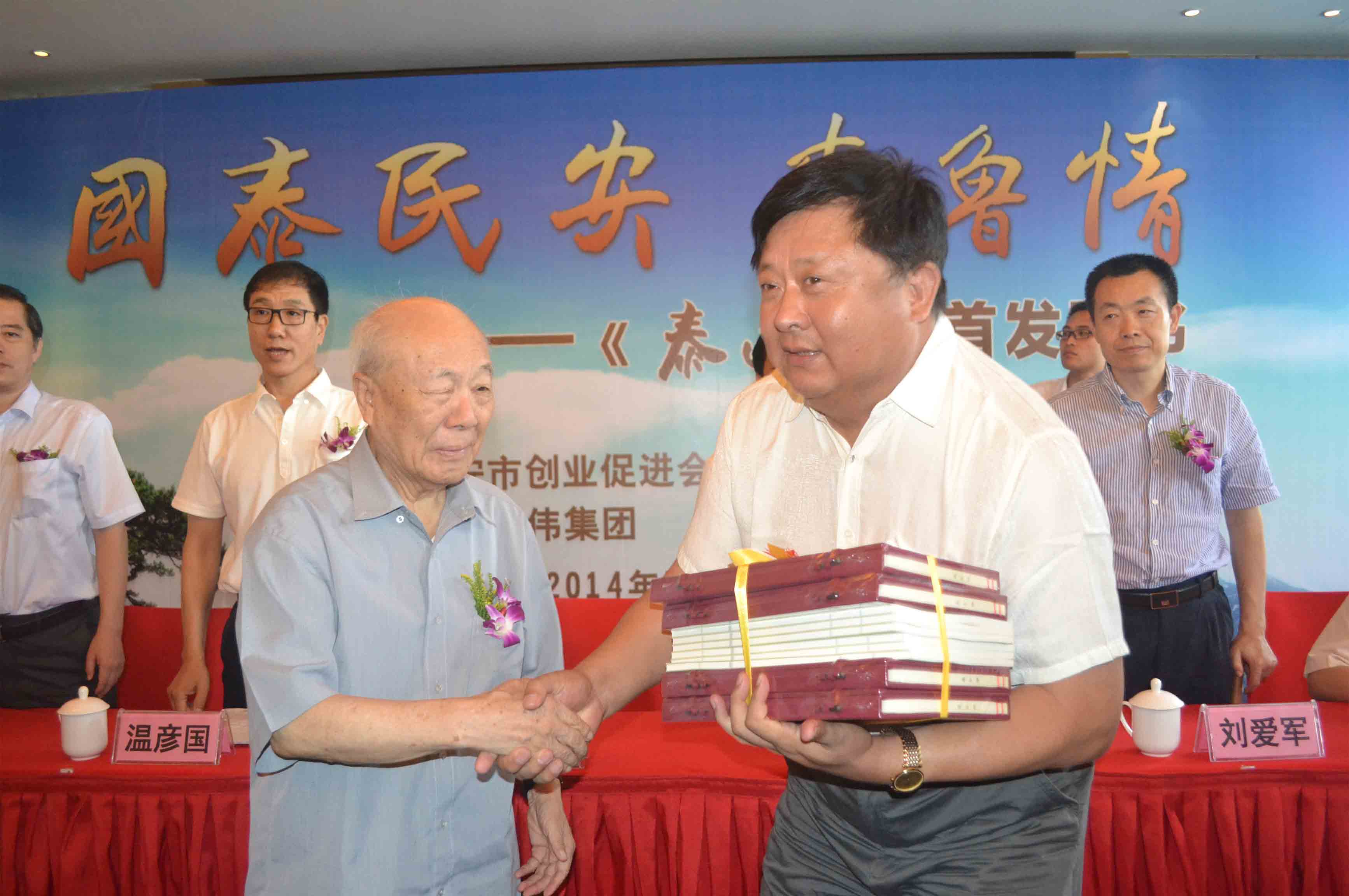 7月18日上午,“國泰民安·齊魯情”著名書法家歐陽中石先生《泰山頌》首發(fā)贈書儀式在泰安寶龍福朋大酒店舉行。董事長、總經(jīng)理康鳳明應(yīng)邀參加儀式,代表宏康集團上臺接受歐陽中石先生贈書并合影留念。 歐陽中石先生是全國政協(xié)委員、中央文史研究館