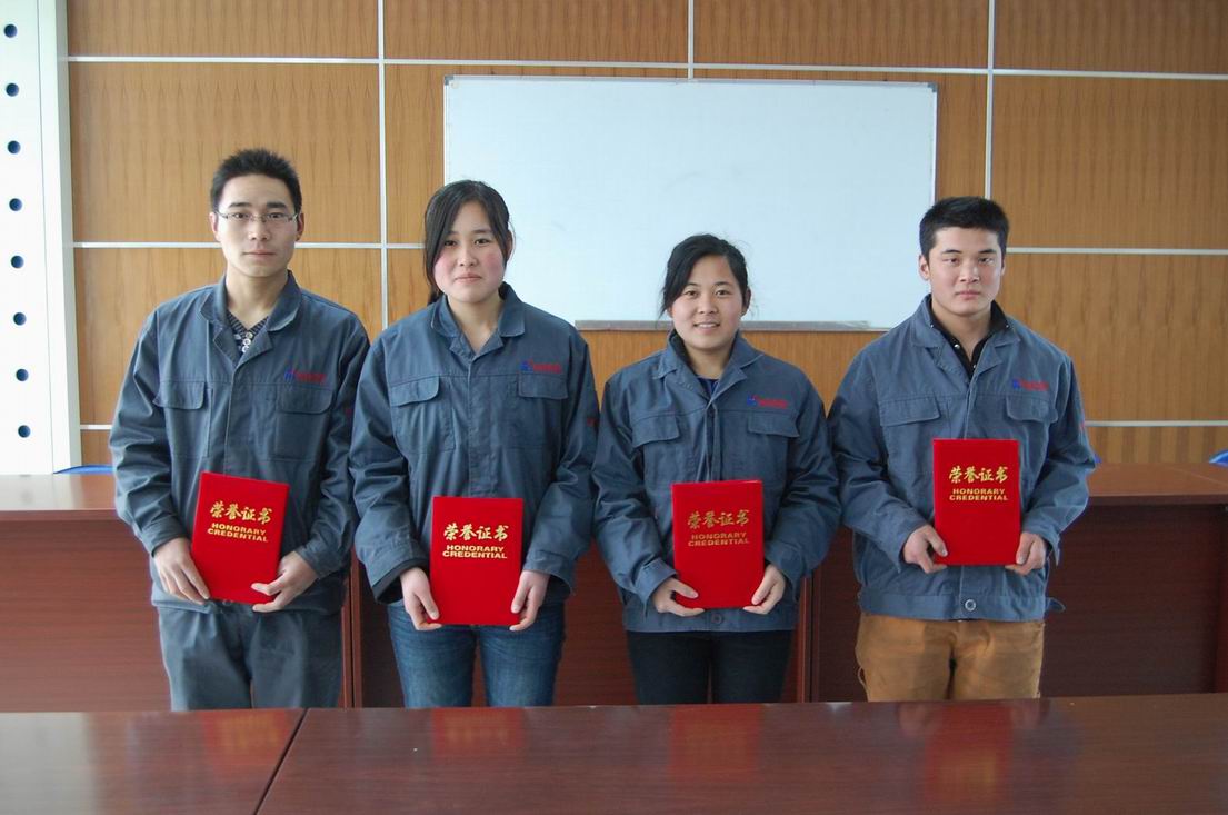 近日,2010年度“泰安市岱岳區(qū)技術(shù)能手”名單公布,全區(qū)共有10名職工獲此殊榮,我公司李海泉、朱倩倩、溫玉敬、田志華(自左至右)四名員工名列其中。