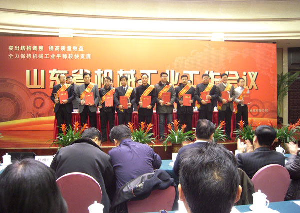 1月10日,山東省機械工業(yè)工作會議在泰安市東尊華美達酒店隆重召開,中國機械工業(yè)聯(lián)合會特別顧問朱森第、山東省機械工業(yè)協(xié)會會長劉衛(wèi)東、泰安市副市長閆新建等領(lǐng)導(dǎo)出席會議并頒獎。公司董事長、總經(jīng)理康鳳明,常務(wù)副總經(jīng)理潘憲平、副總經(jīng)理康峰等領(lǐng)導(dǎo)參加會議。董事長、總經(jīng)理康鳳明榮獲“山東省機械工業(yè)優(yōu)秀企業(yè)家”稱號,副總經(jīng)理朱洪臣榮獲“山東省機械工業(yè)有突出貢獻科技專家”稱號,副總經(jīng)理康峰榮獲“山東省機械工業(yè)優(yōu)秀企業(yè)(行業(yè))管理工作者”稱號。