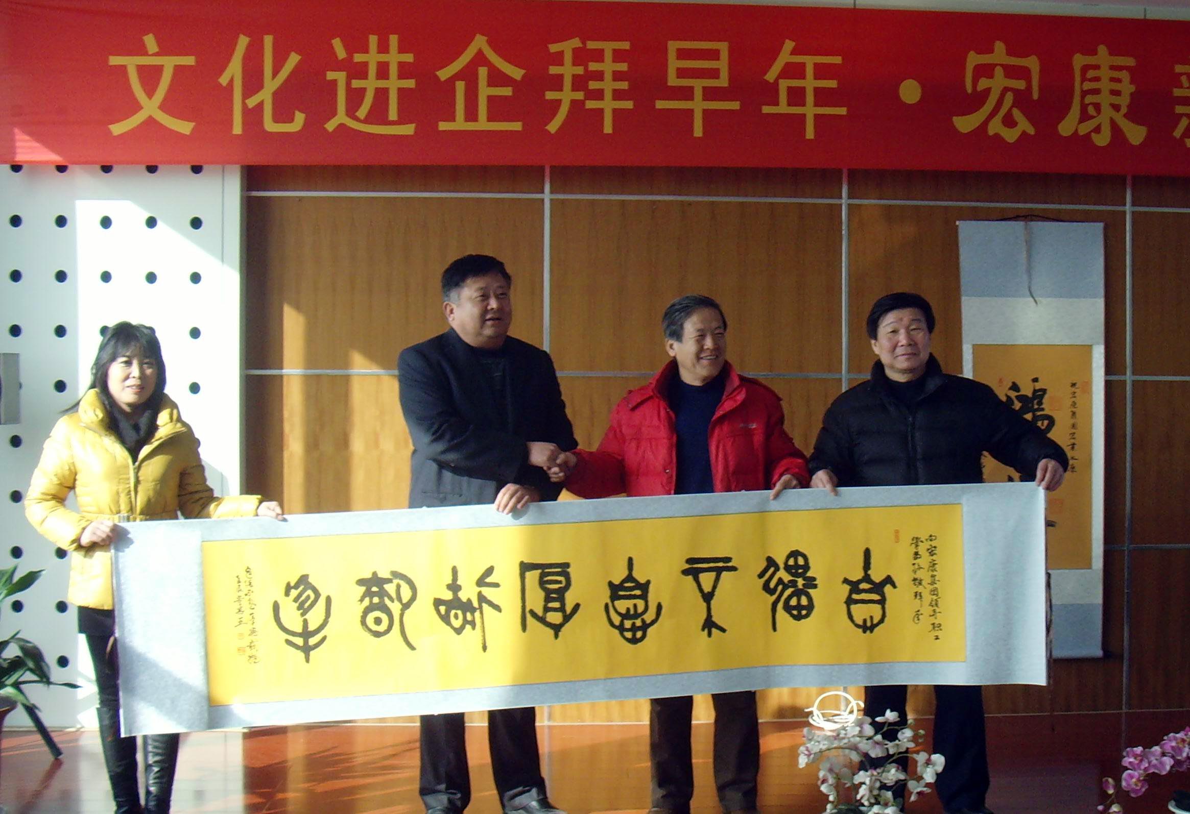 1月24日,泰山文化協(xié)會(huì)副主席、《泰山文化研究》總編、研究員呂大明,協(xié)會(huì)秘書長(zhǎng)、研究員郭立模,畫家、山東科技大學(xué)副教授李金玲,山東省甲骨文書法協(xié)會(huì)理事、泰安市甲骨文書法協(xié)會(huì)會(huì)長(zhǎng)、岱宗書畫院院長(zhǎng)、泰山文化協(xié)會(huì)特聘專家、北京魯特書畫院院長(zhǎng)董德平一行來宏康集團(tuán)開展“文化進(jìn)企拜早年·宏康蛇年吉祥”活動(dòng)。集團(tuán)董事長(zhǎng)、總經(jīng)理康鳳明,副總經(jīng)理聶化濤及部分員工參加了本次活動(dòng)。在活動(dòng)儀式上,書畫家們先后作了熱情洋溢的講話。他們對(duì)宏康近年來的快速發(fā)展給予了高度評(píng)價(jià),對(duì)宏康積極為國(guó)家納稅安排就業(yè),為社會(huì)做出巨大貢獻(xiàn),取得良好的社會(huì)效益給予了高度贊揚(yáng)。集團(tuán)董事長(zhǎng)、總經(jīng)理康鳳明作了重要講話,他說“文化進(jìn)企拜早年”活動(dòng)的開展,豐富了企業(yè)文化生活,并感謝各位畫家書法家們對(duì)宏康的厚愛和支持。在活動(dòng)儀式上,書畫家們向宏康集團(tuán)贈(zèng)送了他們的作品、書籍,并現(xiàn)場(chǎng)潑墨寫字作畫、書寫春聯(lián),一幅幅精美的字畫展現(xiàn)在職工面前,令人陶醉,大家對(duì)大師們的杰作欣賞之余贊不絕口。蛇年來臨之際,宏康員工飽嘗了豐富的精神文化大餐,書畫家們把溫暖送進(jìn)了宏康員工心中。